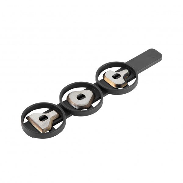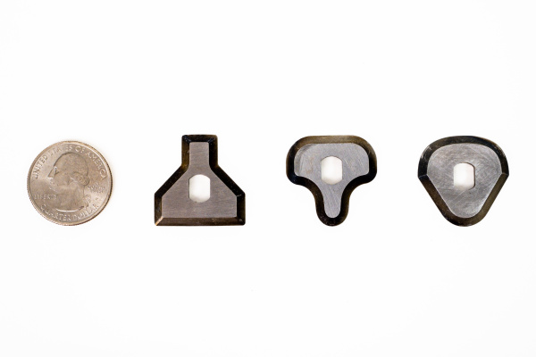 - 3 Swedish, spring steel, laser-cut blades with multiple narrow to wide curves and 1/4” – 1” straight edges
