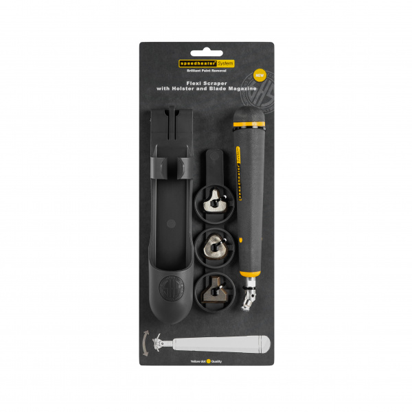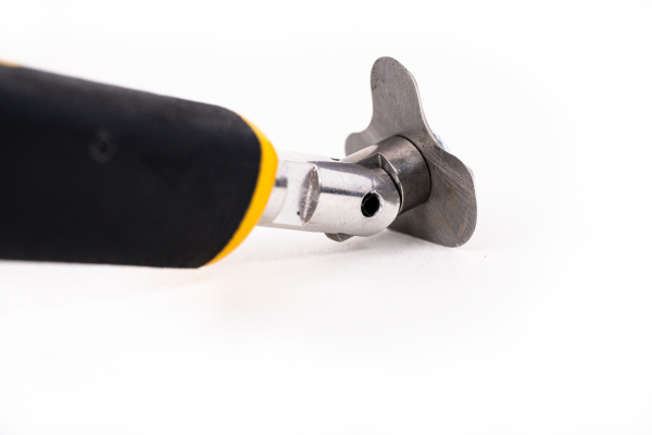 - Tilting scraper head for ease of use with multiple edge shapes on the same blade