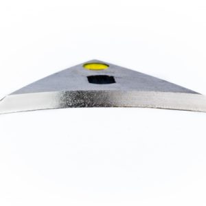 The blade holder fits in the hole in the top side of a blade. With a steady downward pressure on the holder, move the back side of the blade in circles around the abrasive cloth. This circular motion instead of a back and forth motion sharpens all the blade’s edges evenly.